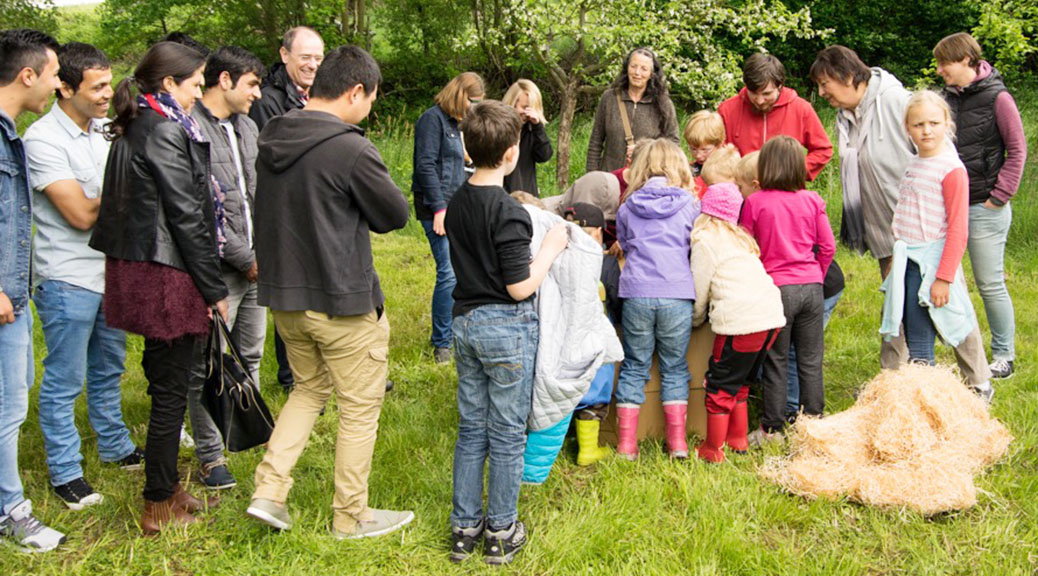 Die Forscherkids konnten es schließlich kaum abwarten, den Nistkasten für Hummeln aufzustellen. Die jungen Forscher verteilten zwar beim Auspacken das Füllmaterial der großen Kiste auf der Wiese, was für den Leiter der Jugendgruppe Thorsten Hormel jedoch kein Problem war. Er hatte für die Holzwolle bereits eine andere sinnvolle Verwendung, indem diese als Nistgelegenheit für andere Insekten dienen könnte.
